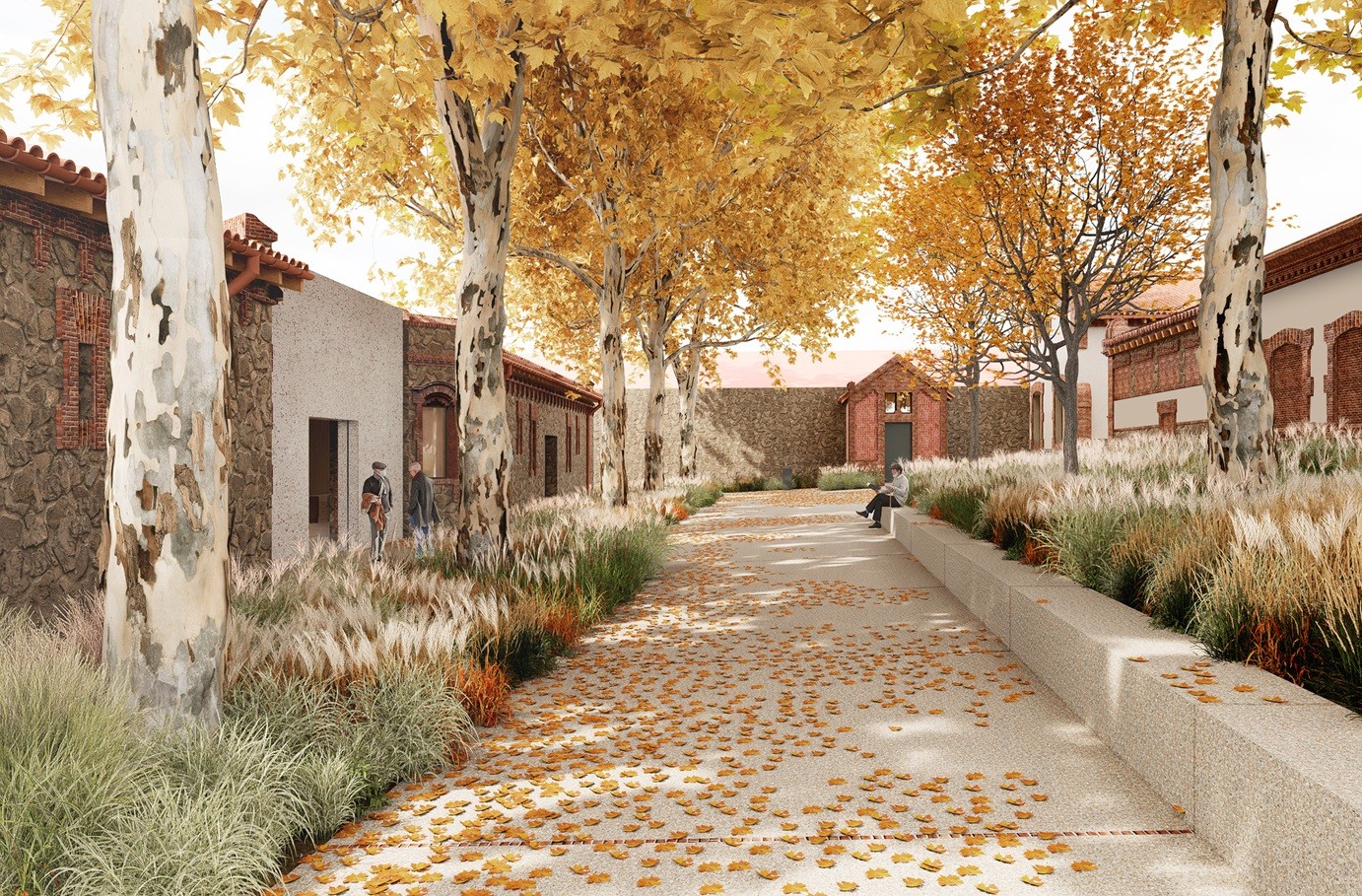 També s’urbanitzarà l’espai públic i es crearà una plaça d’accés, que es convertirà en un refugi climàtic. La plaça s’anivellarà i es pavimentarà, s’hi incorporaran grans zones enjardinades i es preservaran els plataners centenaris. Aquesta estratègia permetrà que la vegetació del lloc es vagi obrint pas per tal de naturalitzar l’espai.