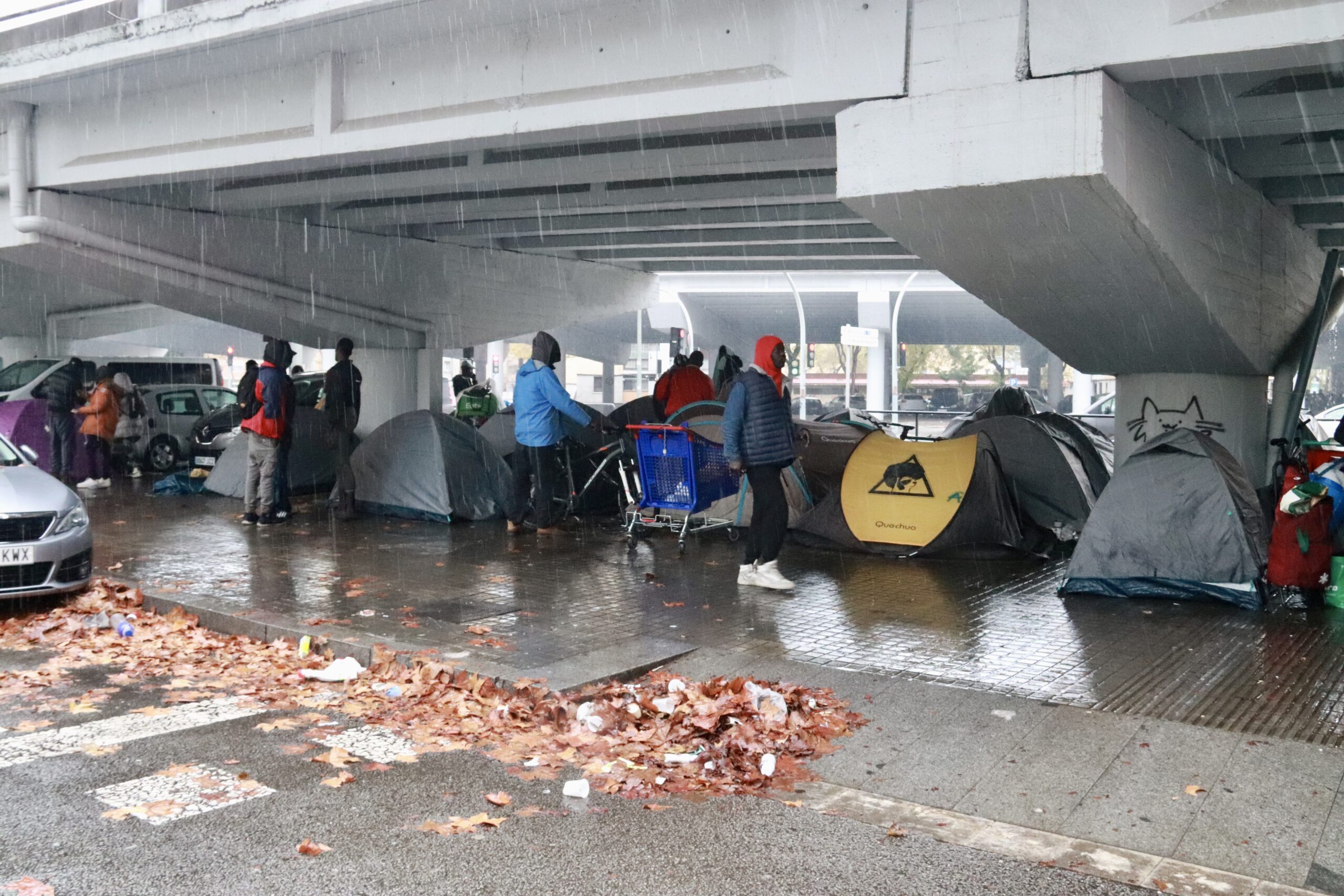 En aquest punt a sota de l’autopista, hi ha desenes de tendes instal·lades, on els desallotjats s’han refugiat durant la nit i aquest dissabte al matí hi continuen, resguardats de la pluja. Després del desallotjament de l’antic institut B9 aquest dimecres a primera hora del matí, aquesta ha estat la tercera nit que els desallotjats l’han passat al ras. “Estem treballant perquè la normalitat torni a la zona i la normativa no permet l’acampada a la ciutat”, ha volgut deixar clar Albiol, que ha respost directament a les crítiques de “racisme institucional” i manca de suport als desallotjats del B9. “El que ha de fer l’ajuntament és donar un habitatge o pagar una pensió a 400 persones que ocupaven il·legalment un immoble? És això?”, s’ha preguntat en veu alta l’alcalde de Badalona.