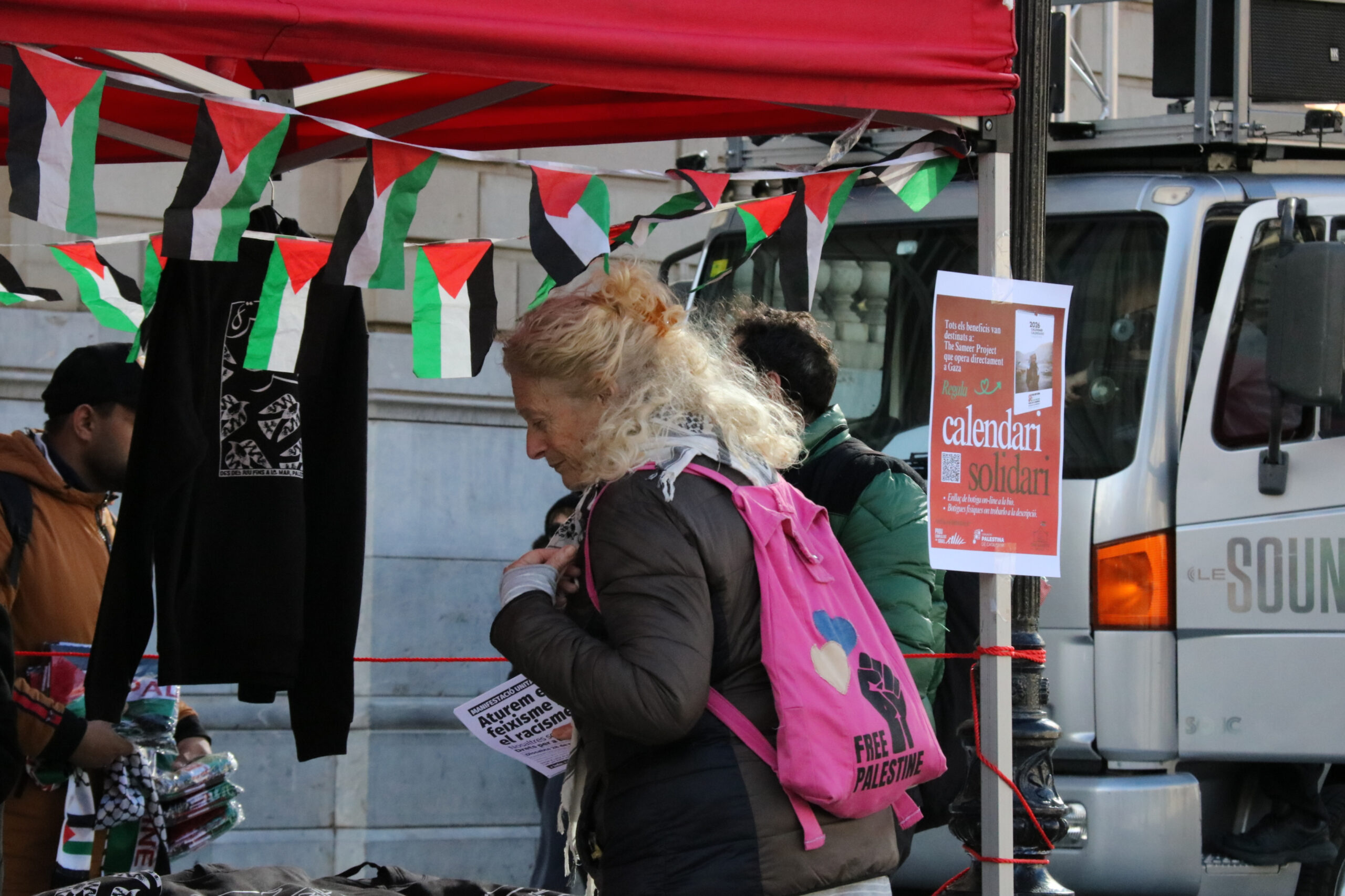 Convocada per entitats com Coalició Prou Complicitat amb Israel, la Comunitat Palestina de Catalunya, el Global Movement to Gaza i la Xarxa Solidària contra l’Ocupació de Palestina, la manifestació ha començat al voltant de les 12 del matí a Jardinets de Gràcia i ha arribat fins a la plaça Catalunya guiada per una camioneta des d’on les activistes cridaven lemes a favor de Palestina.