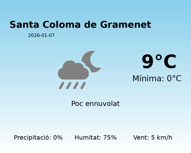 Predicció del Temps per a Santa Coloma de Gramenet – 7 de gener de 2026