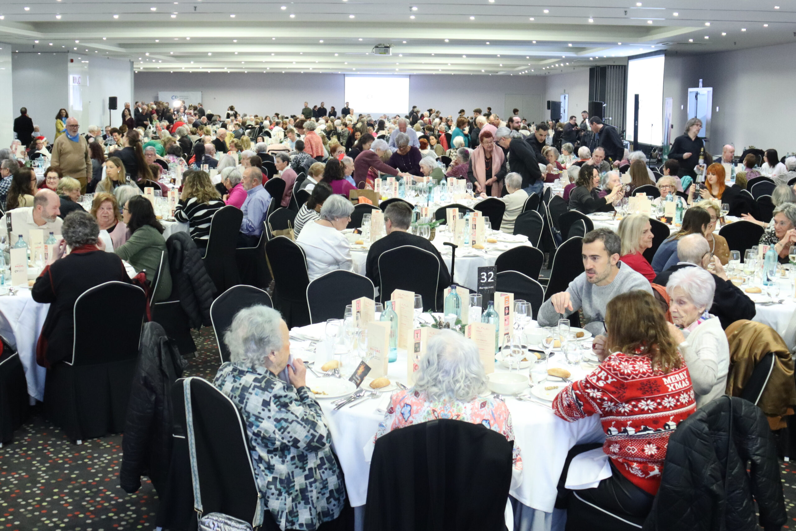 ACN Barcelona – Prop de 600 persones han celebrat Nadal en el dinar més multitudinari organitzat per Amics de la Gent Gran a l’Hotel Barceló Sants. La pluja no ha desaminat els usuaris de la fundació que busquen companyia en unes dates difícils. “Per moltes persones grans, és l’únic moment que tenen per celebrar Nadal”, ha dit Albert Quiles, encarregat de Relacions Institucionals d’Amics de la Gent Gran. En total, l’entitat organitza 17 sopars a Catalunya i 21 a tot l’Estat i impulsa una campanya d’activitats que inclou visites a les llums de Nadal i tallers. “Nadal és molt bonic, però amb l’edat que tenim ens quedem sols i tenim molts records. Es alegria i tristor al mateix temps”, ha dit la Fina, una veïna de l’Eixample de 92 anys.